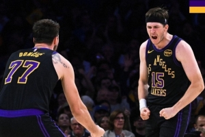 合砍62+18+19!湖人赢球海报:封面为东契奇和里夫斯怒吼瞬间
