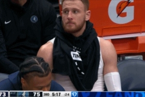 GIF-迪文岑佐坐在替补席没球衣穿 简单套个“围脖”