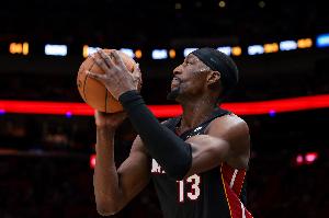 热火内线阿德巴约本场出战在上半场展现出不俗状态,他在进攻端频频制造杀伤获得罚球,外线三分也是相当准。