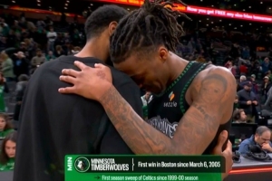 据统计,森林狼上一次在波士顿主场赢球还是在2005年3月6日,上一次赛季横扫凯尔特人还是在1999-00赛季。