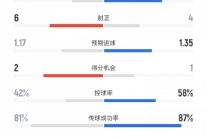 控球率——42%比58%