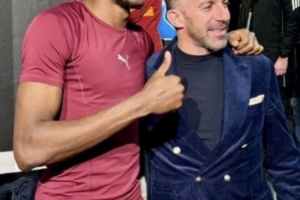 赛后,加拉塔萨雷前锋奥斯梅恩向尤文图斯传奇皮耶罗索要合影,后者是奥斯梅恩最喜爱和崇拜的足球偶像之一。