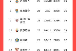 分差扩大!西甲积分榜:皇马联赛两连败,落后巴萨4分